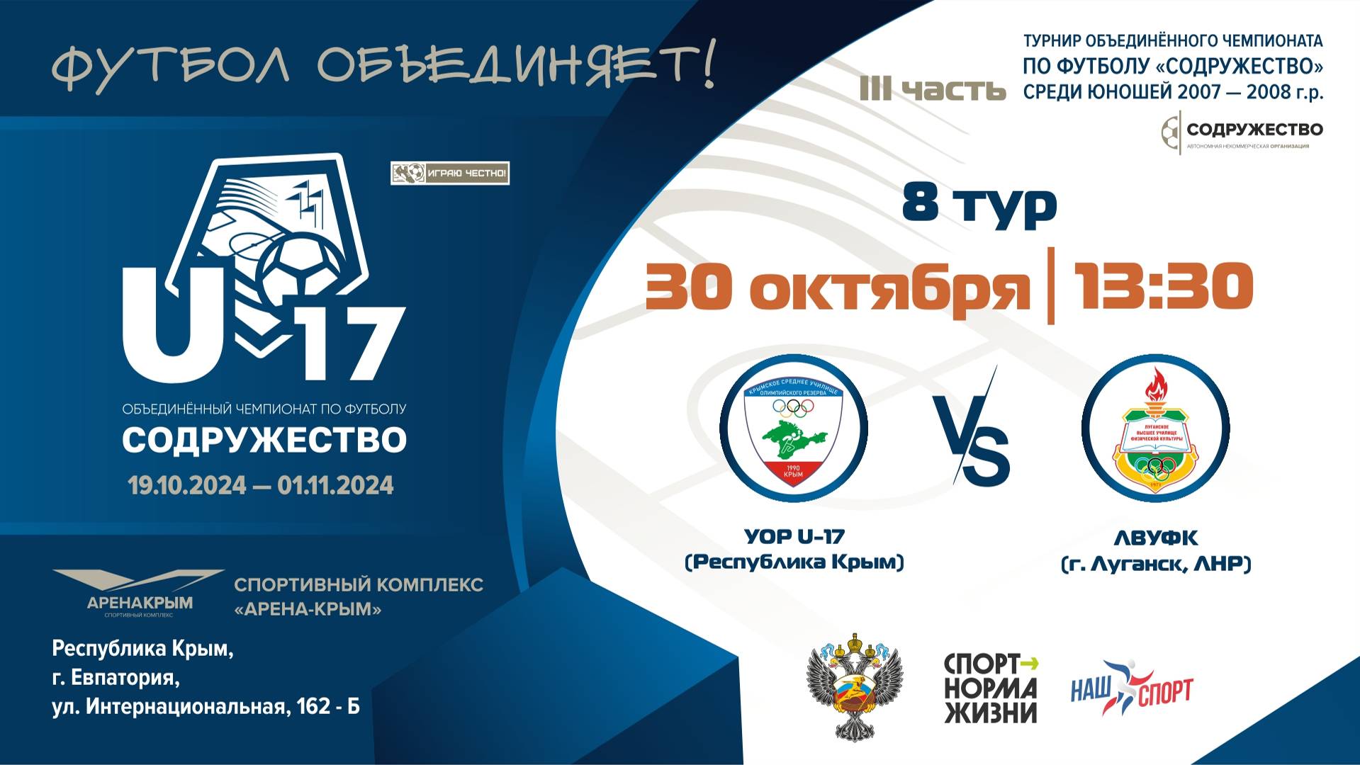8 ТУР | U-17 | УОР U-17 (Республика Крым) vs ЛВУФК (г. Луганск, ЛНР)