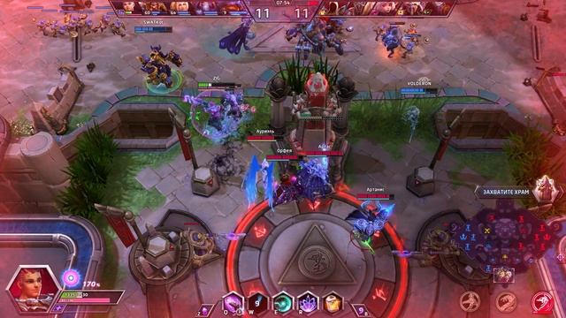Heroes of the Storm — многопользовательская компьютерная игра в жанре MOBA, разработанная Blizzard Entertainment. Вышла 2 июня 2015 года. Игровой процесс Участвуют две команды по 5 игроков, цель — разрушить цитадель противника. Каждый игрок управляет одним героем. Но есть исключения: например, герой «Потерявшиеся Викинги» представляет собой трёх самостоятельных персонажей. В отличие от других игр жанра, в Heroes of the Storm у игрока нет собственного опыта — он общий для всей команды. Когда команда накапливает определённое количество очков опыта, она получает новый уровень, что мгновенно увеличивает здоровье и наносимый урон всех героев (на 4% за каждый новый уровень). Максимальный уровень — 30-й. На уровнях 1, 4, 7, 10, 13, 16 и 20 каждому игроку даётся возможность выбрать один талант и усилить персонажа. В матче отсутствуют характерные для жанра валюта и магазин снаряжения. Персонажи В игре собраны персонажи всех четырёх вселенных Blizzard. Некоторые роли героев: Танк — прикрывает союзников, принимая урон на себя, и мешает продвижению противника. Поддержка — в основном усиливает союзников и накладывает на них положительные эффекты. Убийца дальнего боя — может нанести большой урон, атакуя врагов издали. Убийца ближнего боя — сражается с противником лицом к лицу, быстро нанося целям урон. Лекарь — в основном занимается исцелением союзников и снижением получаемого ими урона. Режимы Некоторые режимы игры в Heroes of the Storm: Быстрая игра — выбрать героя, встать в очередь и сразиться с другими игроками на случайном поле боя. Без рейтинга — выбрать нерейтинговый режим, чтобы сохранить формат драфта и наложения запретов, не беспокоясь о рейтинге. Против ИИ — тренироваться, сражаясь с управляемыми ИИ противниками, чтобы отточить навыки игры за выбранного героя. Пользовательский режим — выбрать поле боя, пригласить друзей и играть так, как удобно: характеристики матча можно настроить по желанию. ARAM — выбрать одного из трёх героев и сражаться на поле боя с одной линией. Рейтинговые матчи — «Лига Нексуса» — участвовать в главных соревнованиях Нексуса, побеждая врагов и поднимая свой рейтинг.