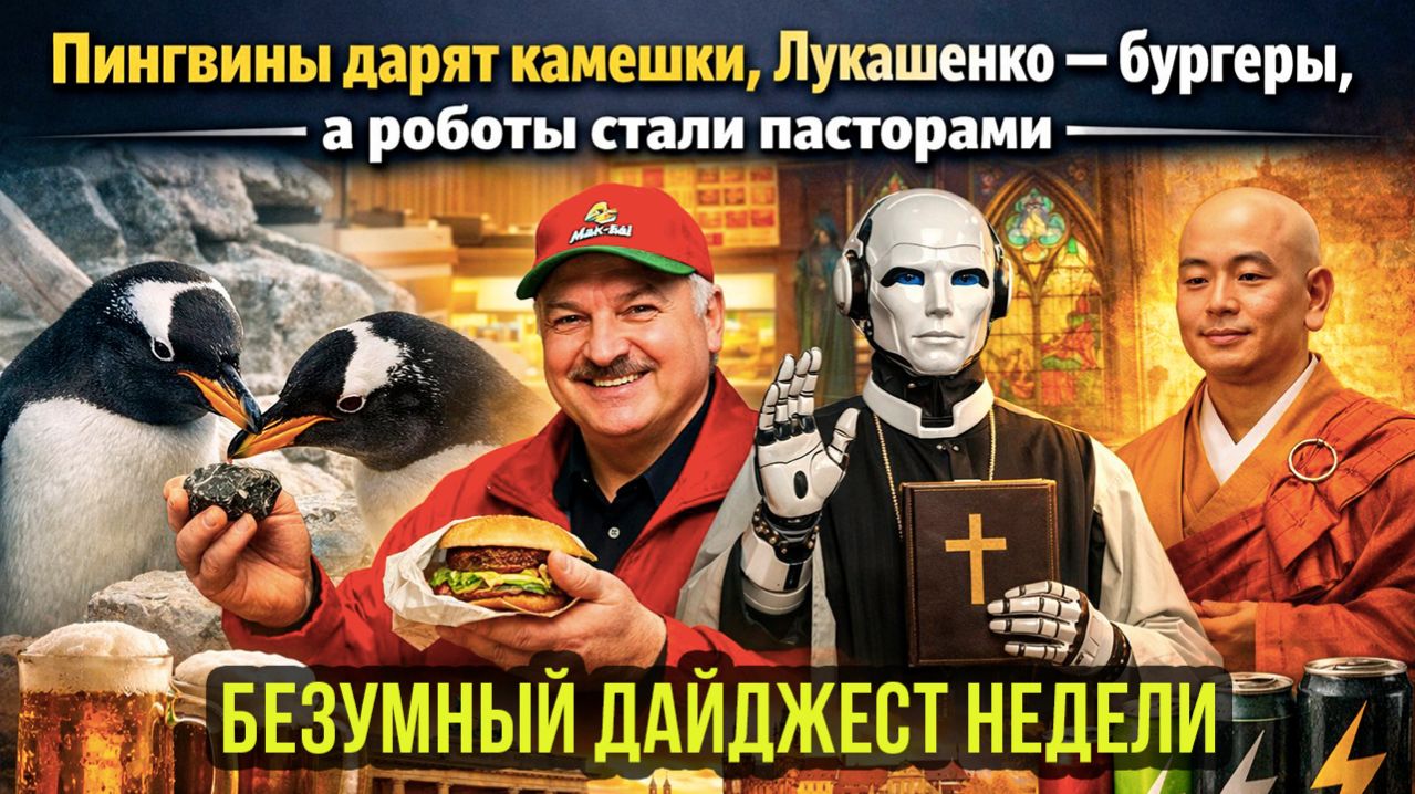 Пингвины дарят камешки, Лукашенко — бургеры, а роботы становятся пасторами: безумный дайджест