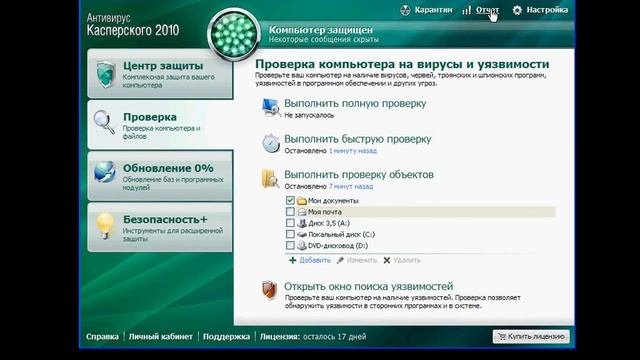 Запуск проверки и работа с отчетом в KAV 2010 (29/49)