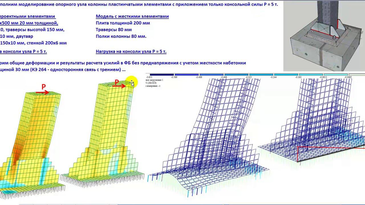 Расчет стальных узлов в ЛИРА-САПР с учетом совместной работы и физической нелинейности стали