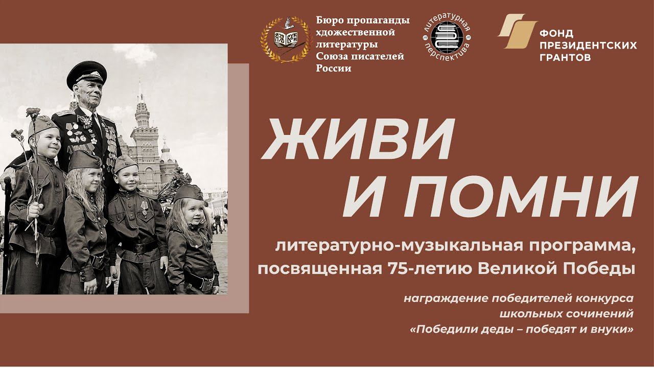 28 сентября 2020 г. состоялась просветительская литературно-музыкальная программа, посвященная 75-летию Победы в Великой Отечественной войне и юбилеям великих деятелей советской культуры: 110-летию писателя А. Твардовского и поэта О.Берггольц, 105-летию поэта К. Симонова, 120-летию певицы Лидии Руслановой и поэта М.Исаковского. В программе приняли участие: певица народная артистка России лауреат премии им. Л.А. Руслановой Надежда Крыгина, артисты МХАТ им. А.М. Горького, профессор Московской государственной консерватории им. П.И.Чайковского Полина Федотова (фортепиано), солисты Московской Филармонии, театра «Новая опера» им. Е.Колобова. Программа проводится в целях сохранения исторической памяти, повышения качества восприятия литературных текстов школьной программы и качества патриотического воспитания. Уникальность проекта в проведении просветительских патриотических программ современного формата с использованием современных технологий эффекта «погружения», что достигается приемом сочетания сценического чтения, информационного комментирования с исполнением живой музыки, авторским видеорядом, в который включены лучшие иллюстрации, музейные экспозиции, съемки литературных мест России, архивные записи выступлений писателей, кадры художественных и документальных фильмов. #PolinaFedotova #АллаПанкова #Терентьевасопрано #Распутин #Крыгина #Бюропропаганды #Исаковский #Симонов
