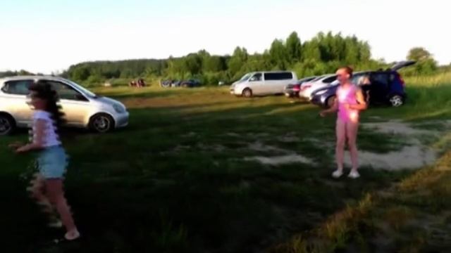 Мы в Смоленске на озере Ольшанские Карьеры. Жара + 30, народу здесь очень много. Играем с мячом, плаваем, играем.