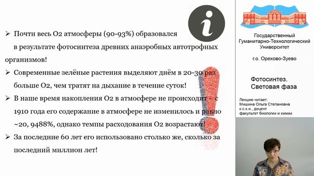 Мишина О.С. Видео-лекция. Фотосинтез. Световая фаза