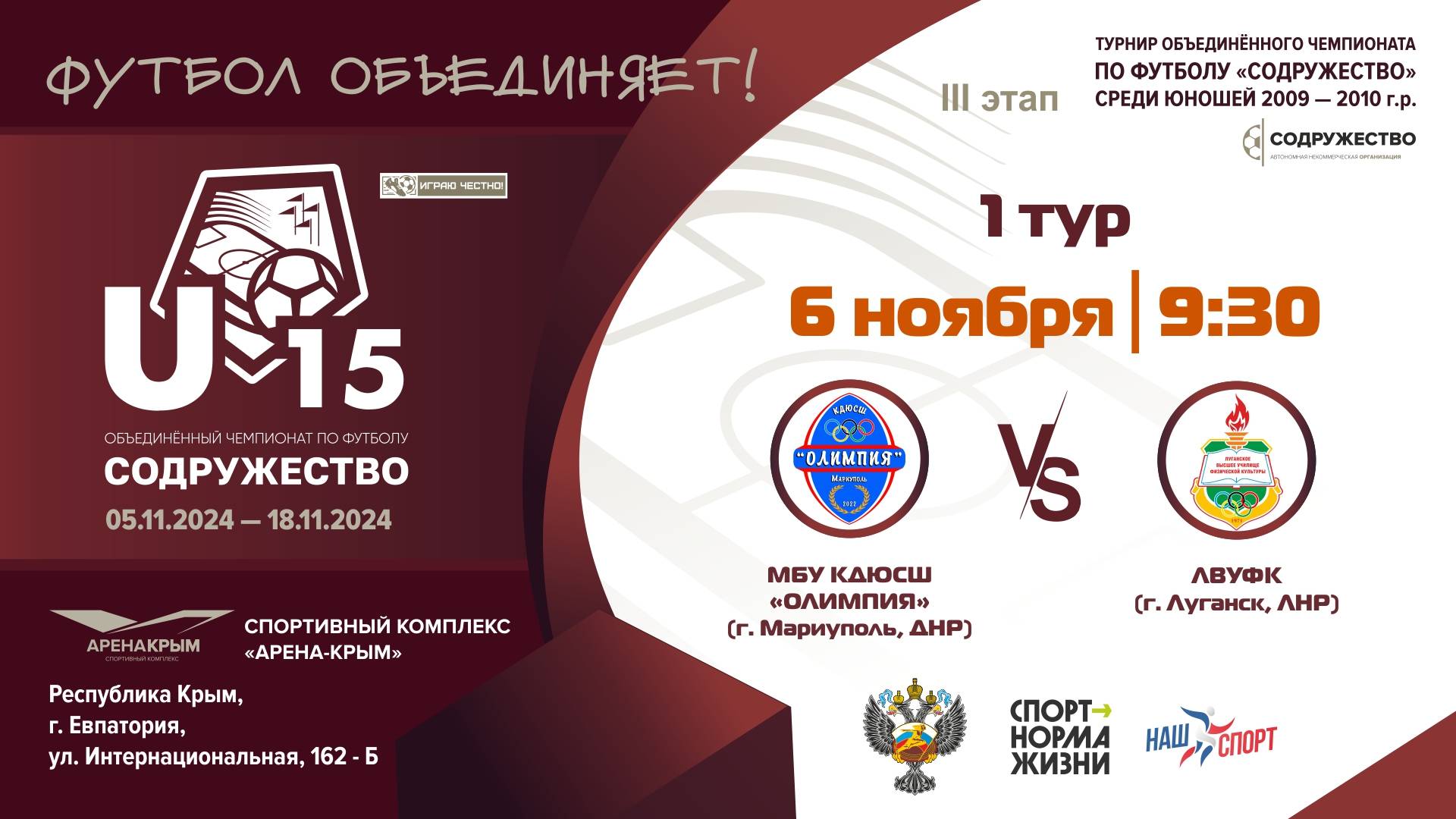 1 ТУР | U-15 | МБУ КДЮСШ "Олимпия" (г. Мариуполь, ДНР) vs ЛВУФК (г. Луганск, ЛНР)