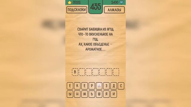 Как пройти Загадки Ребусы Шарады, ответы, решение раздел Загадка Уровень 435 Сварит бабушка из ягод что-то вкусненькое на год. Ах, какое объеденье - ароматное ... Привет, ребята! Пожалуйста, поддержите канал лайком ? и подпиской ? Напишите, какие игры вам ещё интересны. И я постараюсь пройти их для вас ?