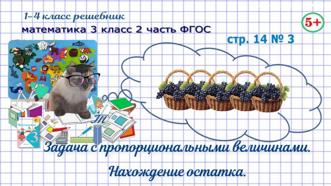 Страница 14 номер 3 математика 3 класс 2 часть Моро 2023 г ФГОС ГДЗ. Составная задача на нахождение остатка с пропорциональными величинами. Сколько килограммов винограда в пятой корзине? Обучение детей. Начальные классы. Если нашли ошибку, напишите, пожалуйста, в комментариях. Сайт с текстовым содержанием: https://dzen.ru/id/650204661aba9b0ba4b2643e #обучениематематике#математика3класс2частьстр14номер3#составнаязадачананахождениеостатка#задачаспропорциональнымивеличинами#сколькокгвиноградавпятойкорзине#обучениедетей#математика3класс1частьФГОС#математика3кл1чФГОС#математика3класс1частьморо2023#длядетей#решебникматематика3класс#гдзматематика3класс#начальныеклассы#1-4классрешебник+