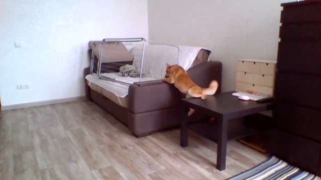 Неудачная попытка забраться на забаррикадированный диван, пока хозяев нет дома. #собака #фейл #падение #сибаину