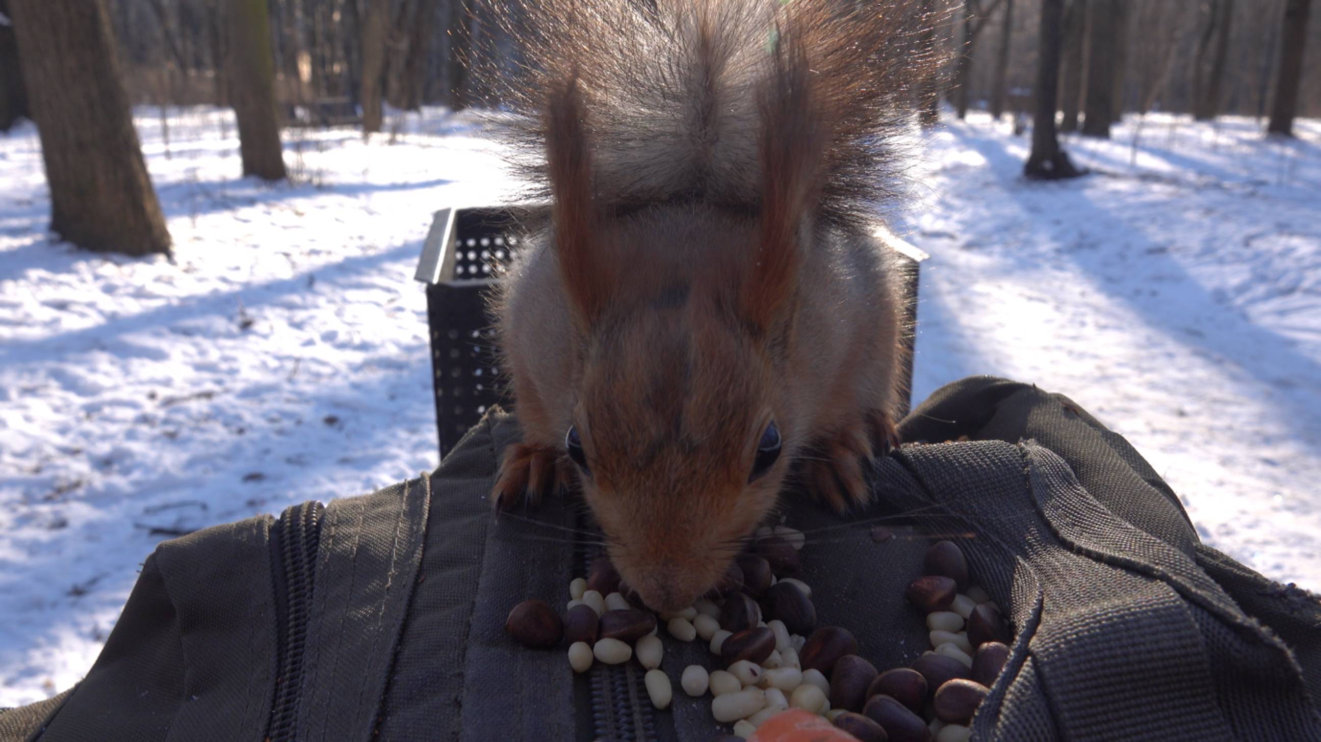 Яжемать забежала перекусить. Я год не видел этой белки