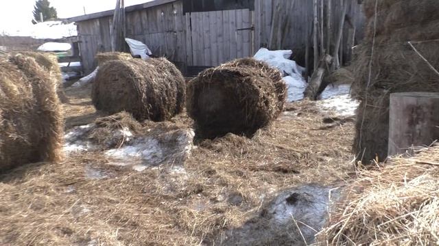 Весна в деревне, трактор, сено. Деревня Окунево.