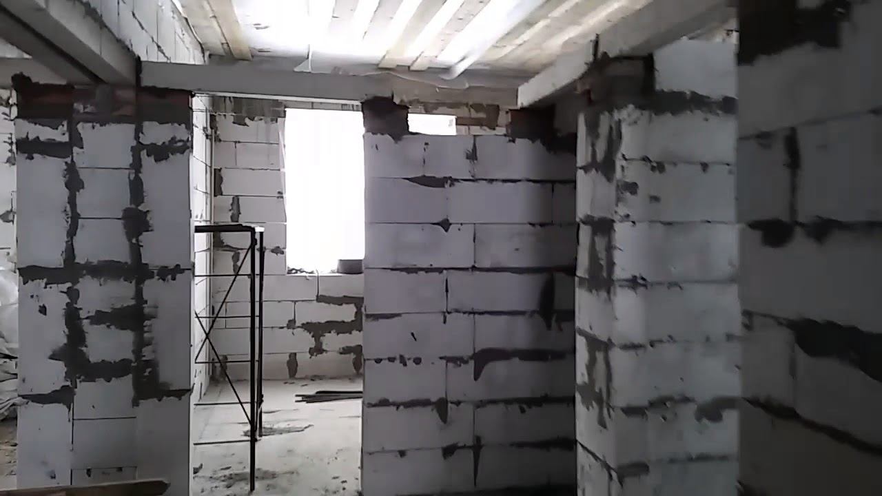 Поднял бетонные перемычки на все комнаты.