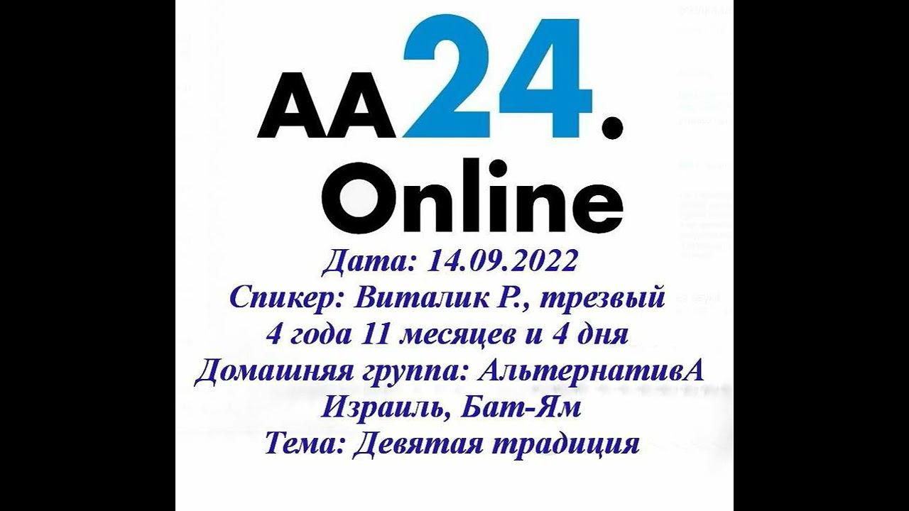 14.09.2022 Виталик Р., 4 года 11 мес трезвый Нетания,Израиль Альтернатива, г.Бат-Ям Девятая Традиция