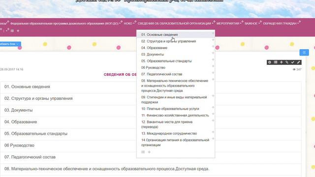 Перемещение пунктов меню