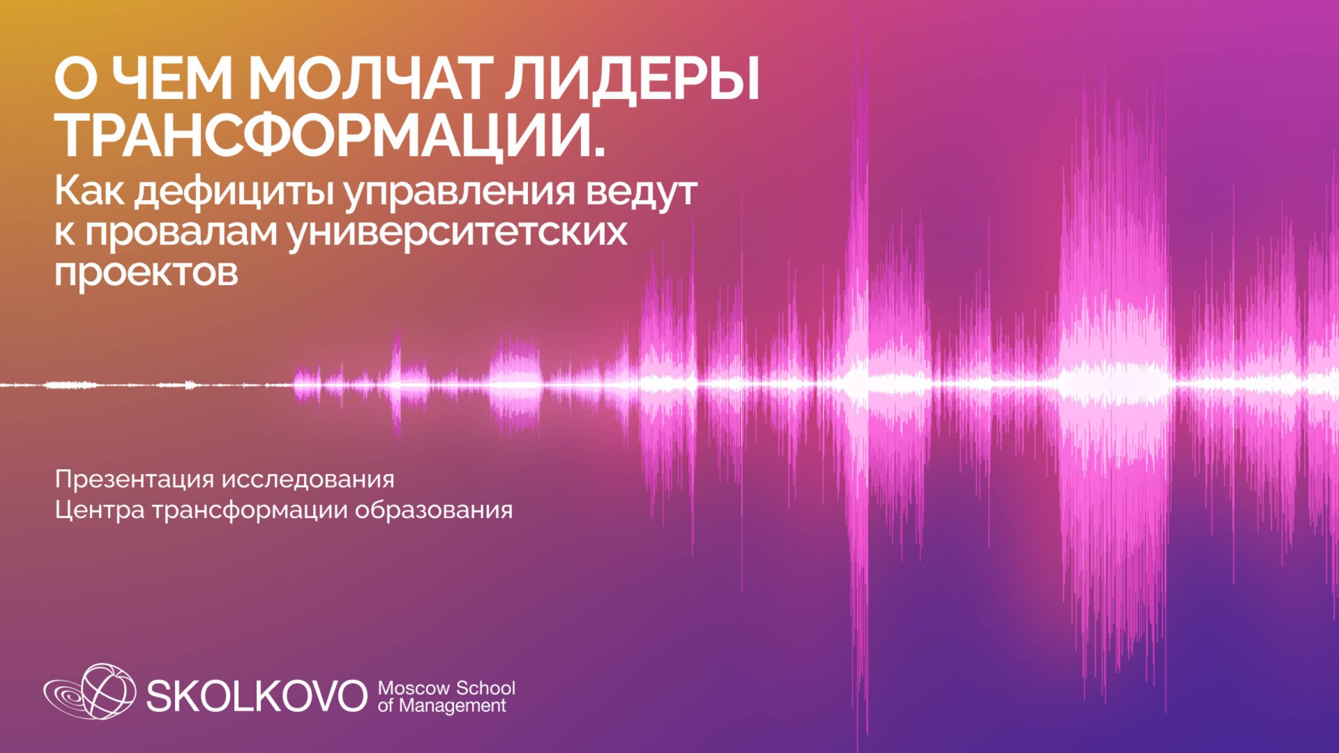 Презентация исследования Центра трансформации образования СКОЛКОВО: «О чём молчат лидеры трансформации. Как дефициты управления ведут к провалам университетских проектов». Разбираем, какие управленческие дефициты чаще всего срывают даже сильные проекты изменений в университетах, где прячутся ключевые риски и как выстраивать процессы, чтобы повышать устойчивость трансформаций. Спикеры: Ольга Назайкинская — профессор бизнес-практики, директор Центра трансформации образования МШУ СКОЛКОВО Евгений Куликов — ректор Сибирского государственного медицинского университета Мария Косицына — руководитель офиса трансформации Тюменского государственного университета Материалы: Узнать больше об исследовании и запросить полную версию можно по этой ссылке: https://www.skolkovo.ru/researches/o-chem-molchat-lidery-transformacii/