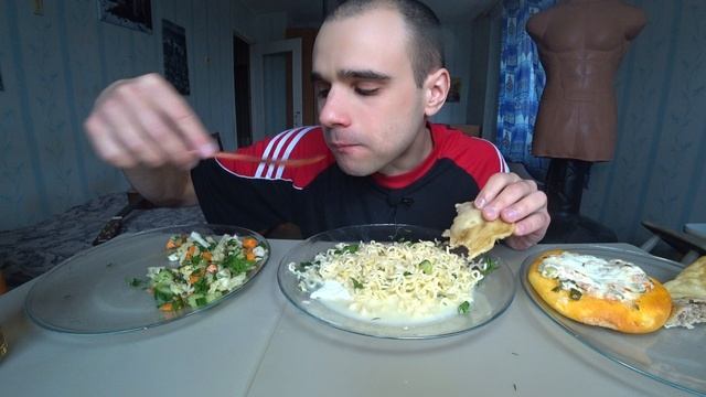 МУКБАНГ / ЛАПША РОЛТОН С КОТЛЕТОЙ ИЗ КУРИЦЫ / ЯИЧНИЦА/ САЛАТ/ ПИЦЦА/ EATING Mukbang ASMR/ АСМР #874