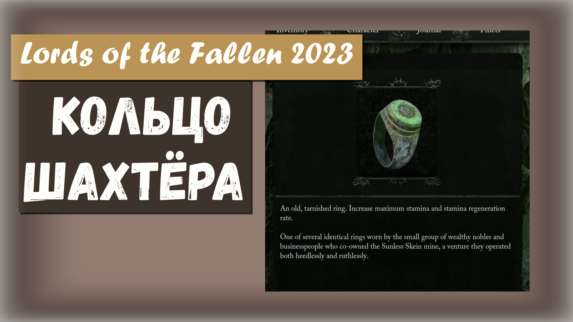 Lords of the Fallen.Где в начале игры взять кольцо повышающую выносливость и её быструю регенерацию