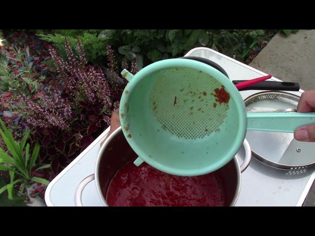 Помидоры -4 кг. (пюре -4 кг.) Базилик - много Лук - 3 шт. Чеснок -3-4 головки Томатная паста -3-4 ст. ложки Острый перец - 4-5 шт. Растительное масло - 1/3 стакана Соль - 1 ст. ложка Сахар - 2-3 ст. ложки Пряные травы