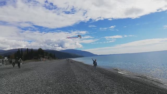 🪁 Полёт фантазии: запуск воздушного змея на пляже Цандрыпш, Абхазия | октябрь 2025