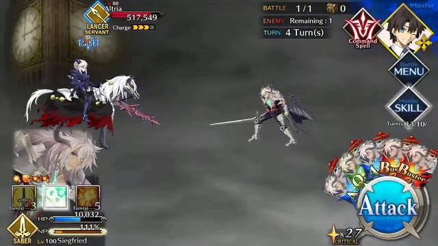 Siegfried Solo of the London Memorial Quest in FGO. One of the easier solos, overall.