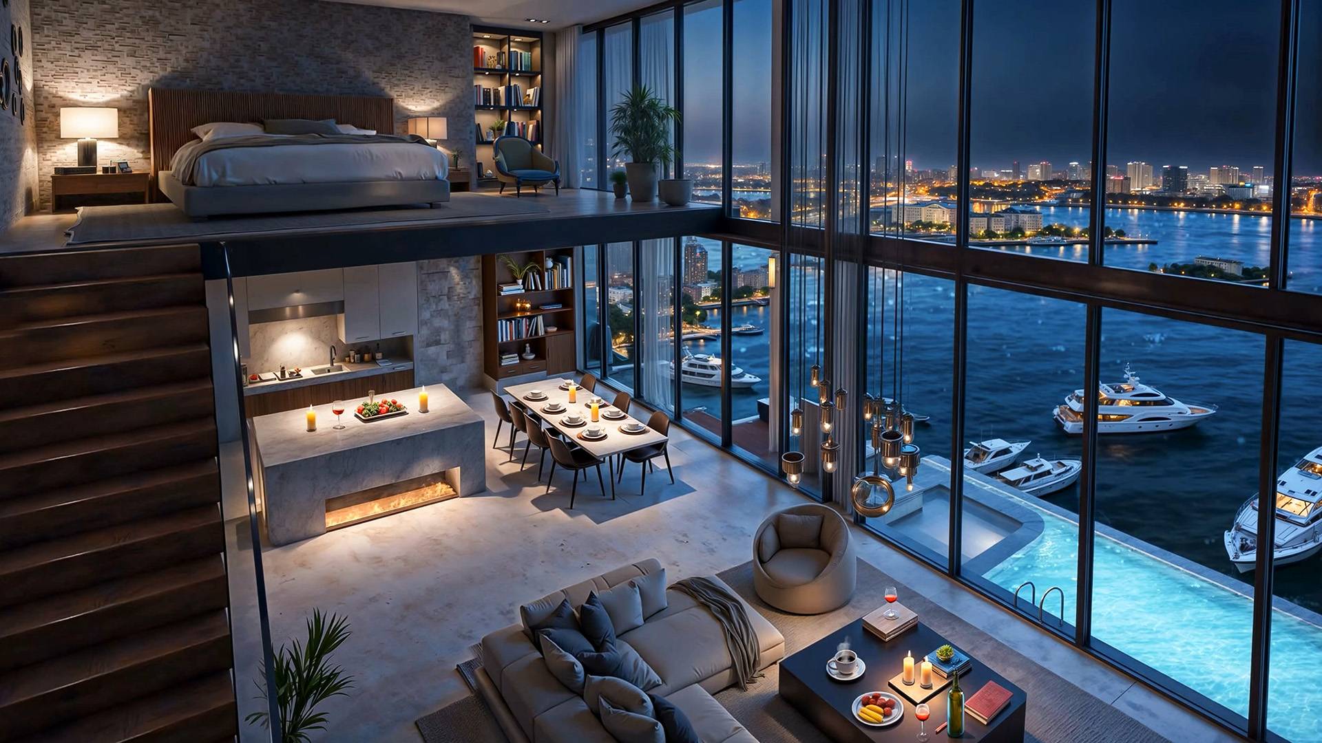 Расслабьтесь под звуки плавного джаза в интерьере премиум-апартаментов с видом на ночную марину. Атмосфера уюта, свечей и тёплого света погружает в состояние полного спокойствия. 🎷 В этом видео: ▪ Современные роскошные апартаменты ▪ Вечерний лаунж-джаз ▪ Уютная обстановка с видом на океан и яхты Идеально для сна, отдыха, вдохновения и уютных вечеров. #джаз #лаунж #роскошь #вечер #релакс #музыкадлядуши #виднаяхты