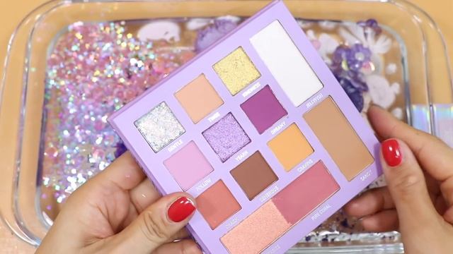 Смешиваем «лавандовые» тени и макияж, блёстки в слайм! Увлекательное видео со слаймом! ★ASMR★