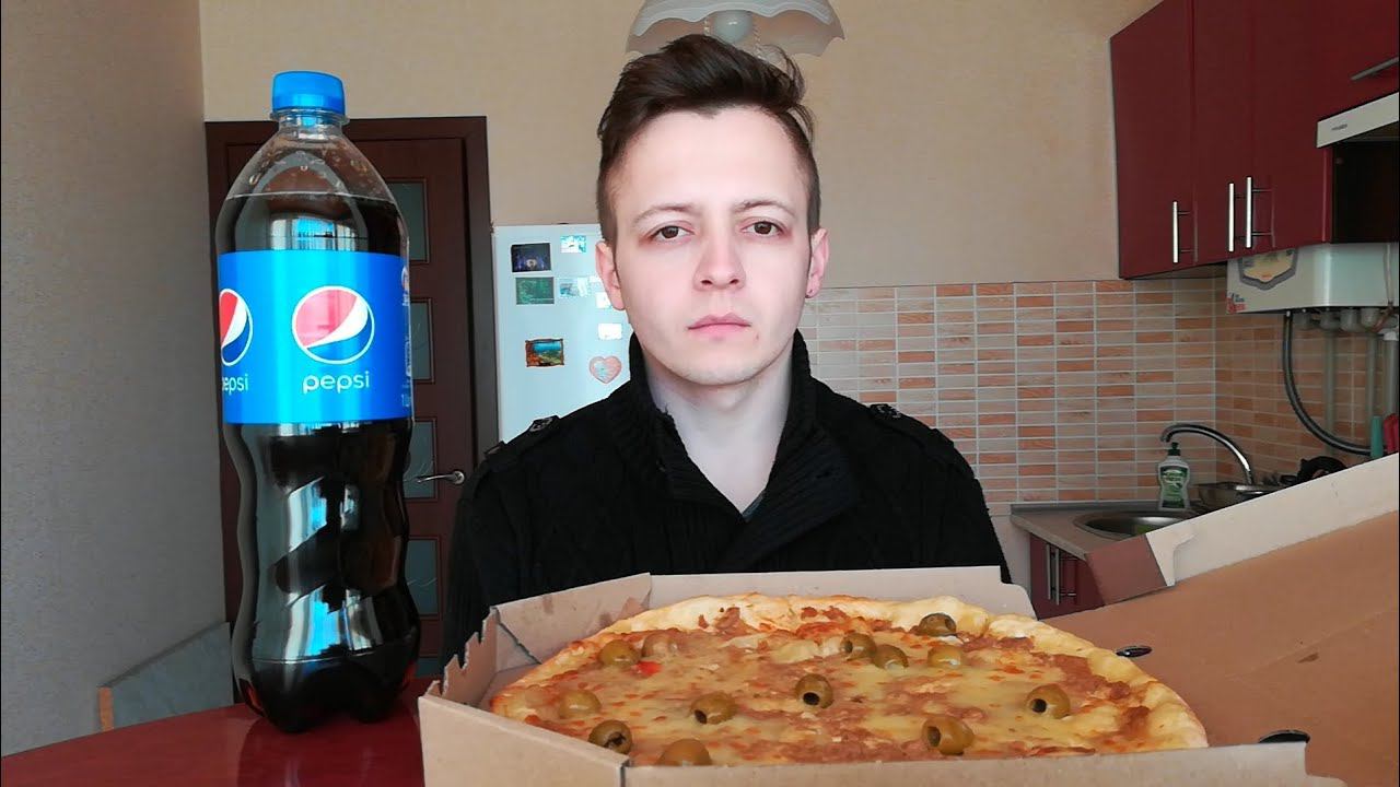МУКБАНГ ПИЦЦА С ТУНЦОМ, ОЛИВКАМИ, СЫРОМ, СЛИВОЧНО-ЧЕСНОЧНЫМ СОУСОМ И PEPSI