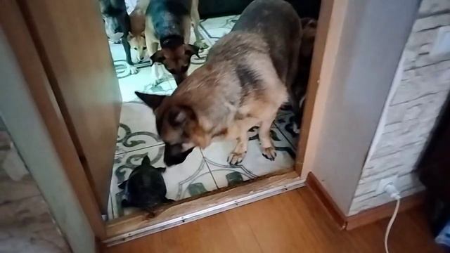 Собачки приюта знакомятся с Тиной