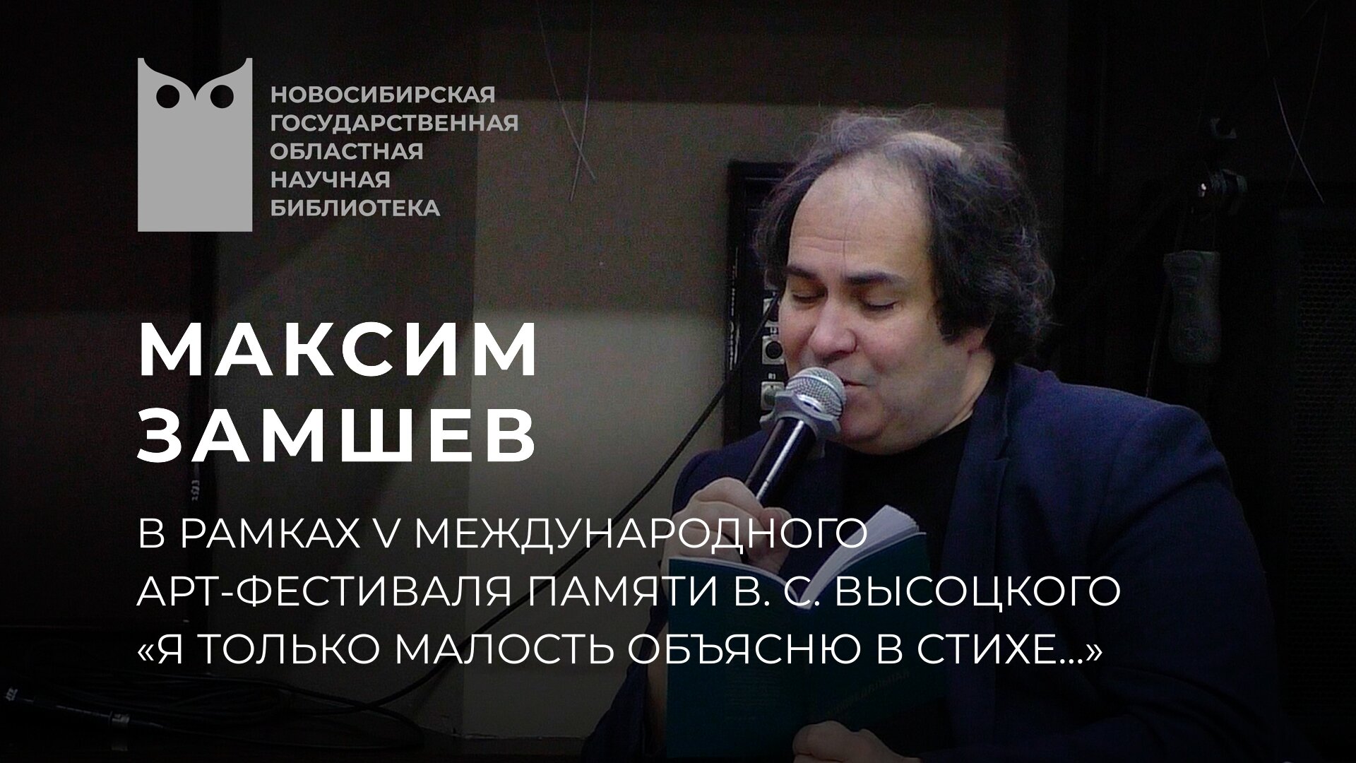 НГОНБ 2023-01-26 Максим Адольфович Замшев — российский поэт и прозаик, публицист. Председатель Правления Московской городской организации Союза писателей России, член Союза журналистов России. Заслуженный работник культуры Чеченской Республики (2010). Член Совета при Президенте Российской Федерации по развитию гражданского общества и правам человека. Главный редактор «Литературной газеты». В рамках V Международного арт-фестиваля памяти В. С. Высоцкого «Я только малость объясню в стихе...».