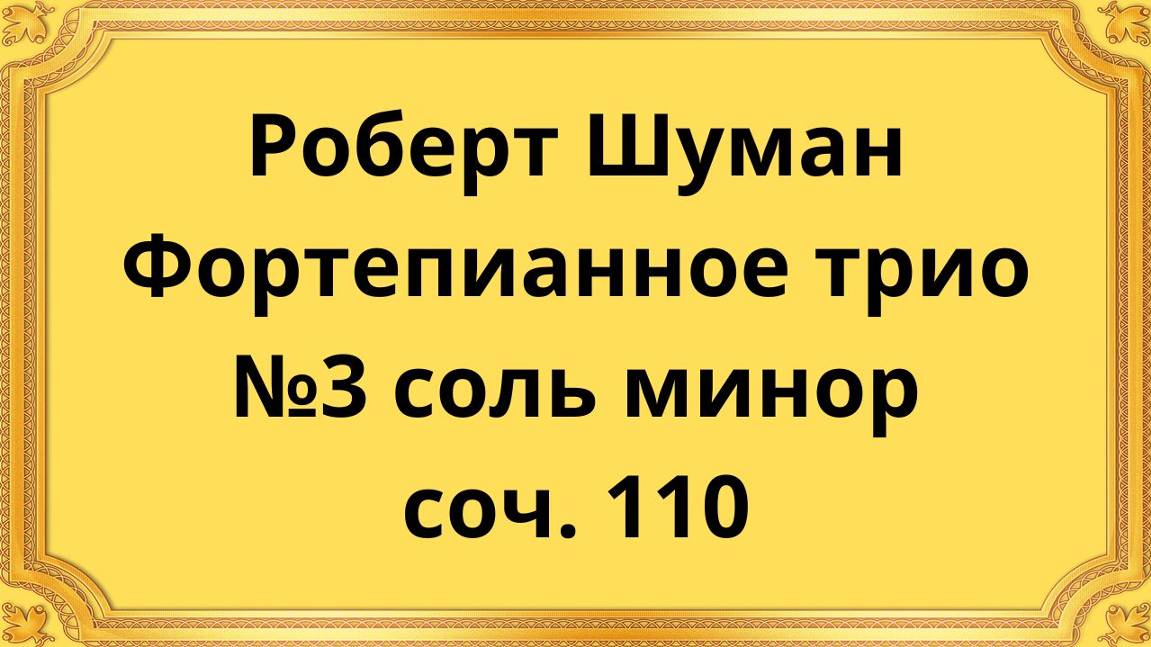 Роберт Шуман Фортепианное трио №3 соль минор, соч. 110