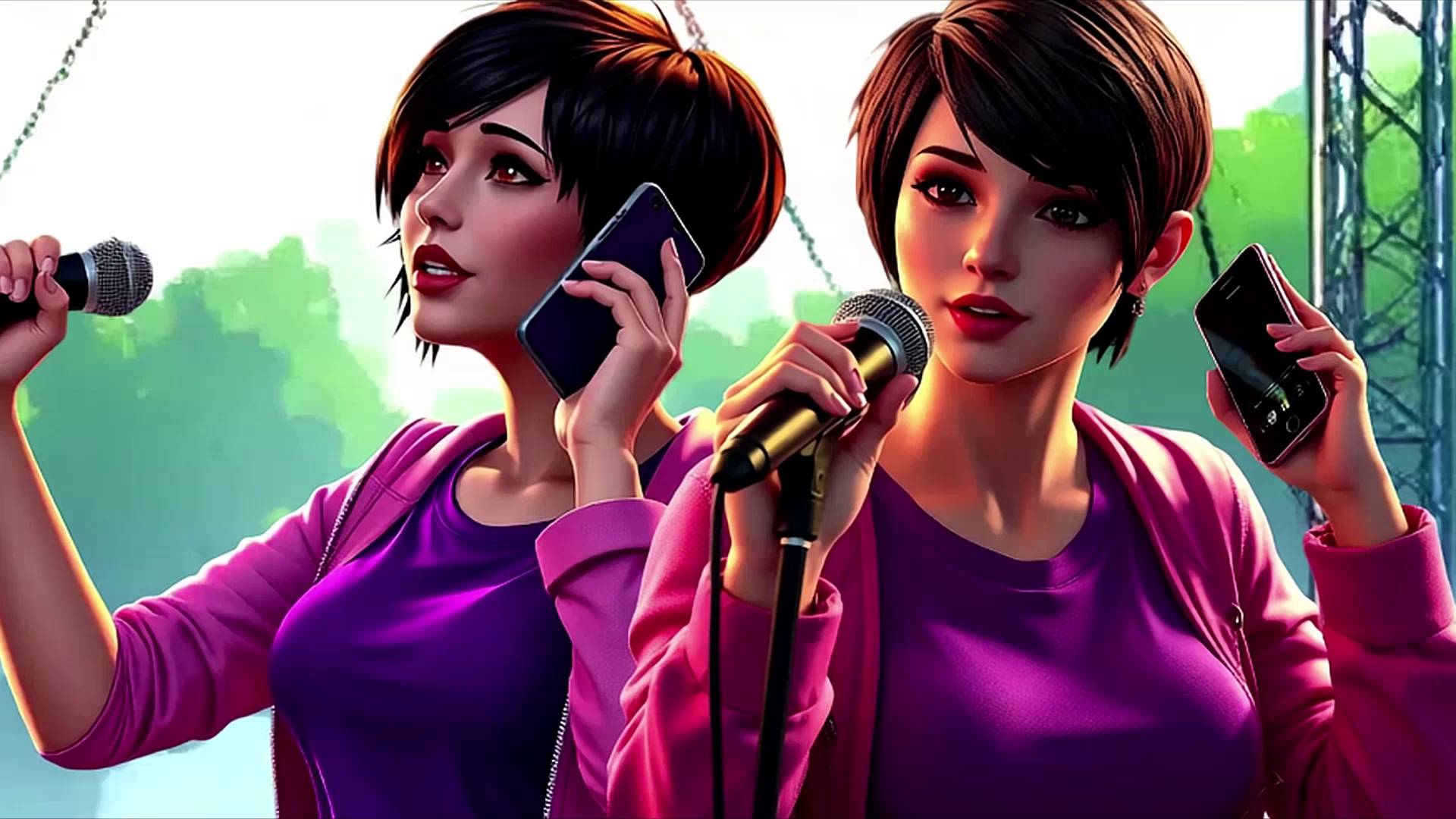 Анимационное видео. Певицы с телефонами. Звучит песня