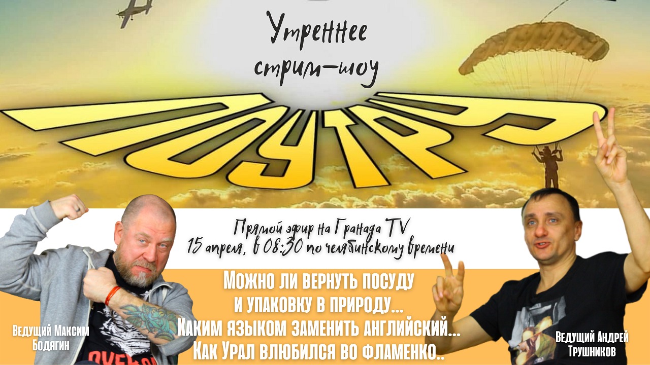 Новые темы, новые обсуждения и новые интересные гости! Стрим-шоу «Поутру» представляет: Ирина Потороко, завкафедрой «Пищевые и биотехнологии» ЮУрГУ, раскроет секрет производства биоразлагаемой посуды и упаковки для замещения импортных изделий из пластика. С полиглотом и преподавателем иностранных языков Вадимом Бакировым обсудим, что может прийти на смену моде на изучение английского языка. Известный челябинский хореограф и педагог Лариса Хорват расскажет, зачем Челябинск организует фестиваль фламенко. Проведите утро с нами! Будет интересно.
