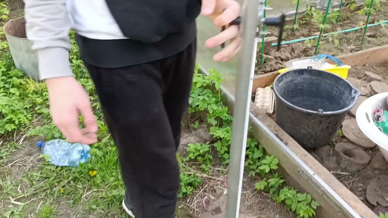 4.05.2024 сегодня утром были заморозки, соседка говорит даже вода замерзла, мы приехали вечером проверить клубнику и теплицу, томаты которые посажены с нимисе в порядке, а которые в стаканах немного подмерзли.