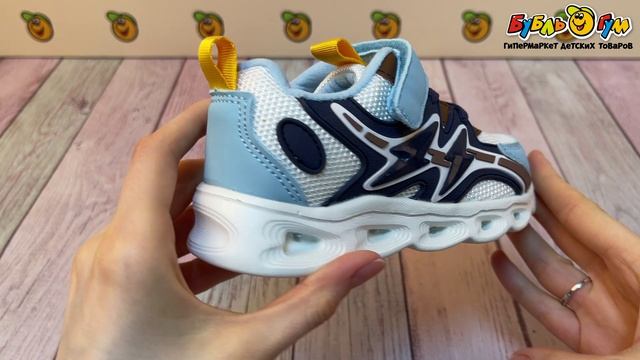 349462 Кроссовки Pasito на липучке и шнурках с декоративными вставками и огоньками разноцветные