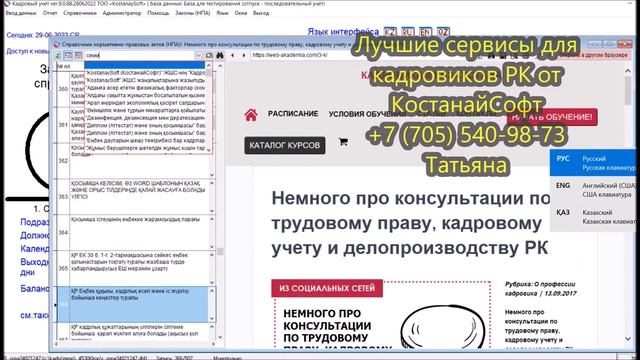 Урок 77. Законы (НПА), статьи кадровикам на казахском и русском языках в программе КостанайСофт