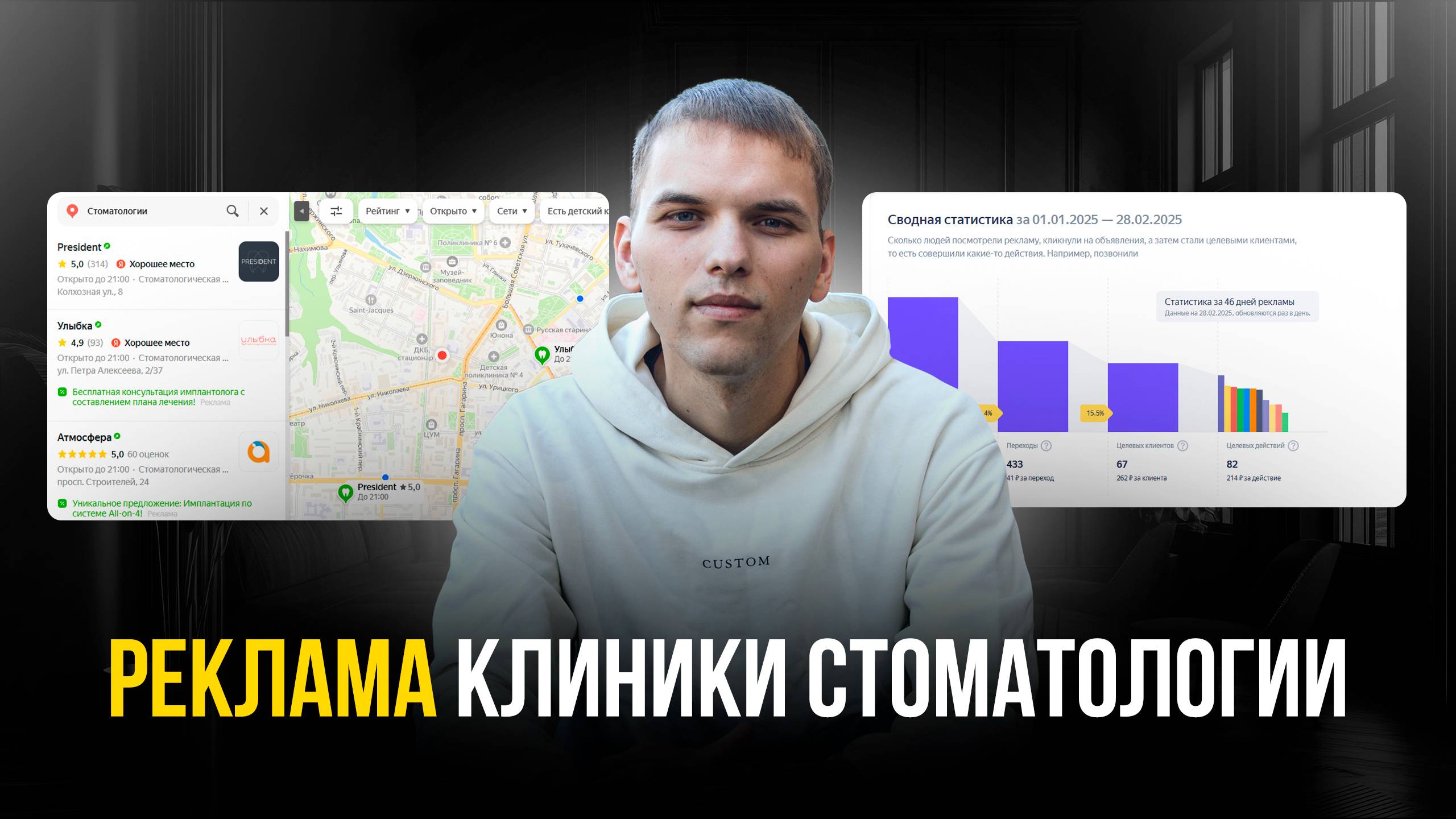 Подписывайтесь на соц. сети: ВКонтакте: https://vk.com/stas_sergeykin Телеграм: https://t.me/promarketing_biz Бесплатная консультация по маркетингу: Телеграм: https://t.me/sergeykinmarketing Телефон: +7 920 334 34 44 WhatsApp: https://wa.me/79203343444 Сайт: https://sergeykin-marketing.ru/ Промокод на увеличение рекламного бюджета на 5 000 руб: PERK-E468-47D6-B050 (Яндекс Бизнес) Промокод действителен до 20.03.2026 Ссылка для бесплатной активации промокода: https://yandex.ru/business/pref?pname=of_sergeykin Всем привет! В этом видео раскрою тему: Продвижение стоматологии. Реклама клиники стоматологии. Пациенты для стоматологии! Разберем такие инструменты привлечения клиентов, как ГЕОсервисы: Яндекс Бизнес (Карты), 2ГИС. С вами Станислав Сергейкин, и на этом канале я рассказываю про маркетинг. Подписываетесь! Будете знать, как привлекать клиентов из интернета. Другие видео по теме: 2 ГИС или Яндекс Карты: https://rutube.ru/video/780e6cee4b067170842f458dd0099278/ Продвижение через Яндекс Бизнес: https://rutube.ru/video/f42ebd8a5eec06628d23c922e021368f/ --------------------------------- Тайм коды: 00:00 О чём видео. 00:23 ТОП-1 причина продвигать стоматологию в ГЕОсервисах. 02:35 Пациенты для стоматологии с Яндекс Бизнес (Карты). 04:48 Как мы работаем с Яндекс Бизнес (Карты). 10:02 Реклама в Яндекс Бизнес (Карты). 14:29 Регулярная работа с Яндекс Бизнес (Карты). 15:03 Продвижение стоматологии в 2ГИС. 16:52 Заключение. --------------------------------- #продвижениестоматологии #рекламастоматологии #пациентыдлястоматологии Возможно вы искали: реклама детской стоматологии продвижение стоматологии кейсы клиенты для стоматологии привлечение клиентов в стоматологию