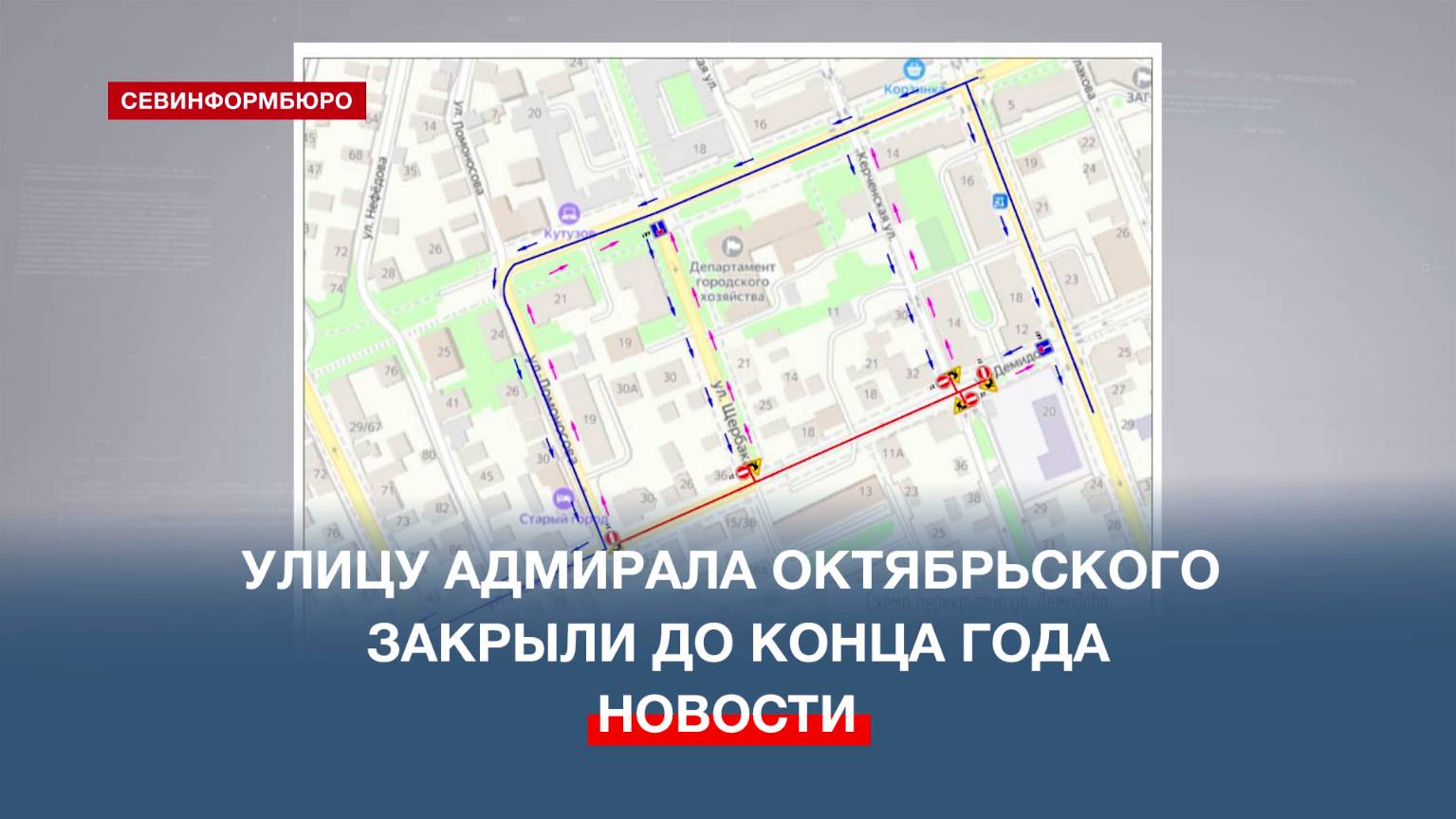 Улицу Адмирала Октябрьского закрыли для транспорта и пешеходов до конца года