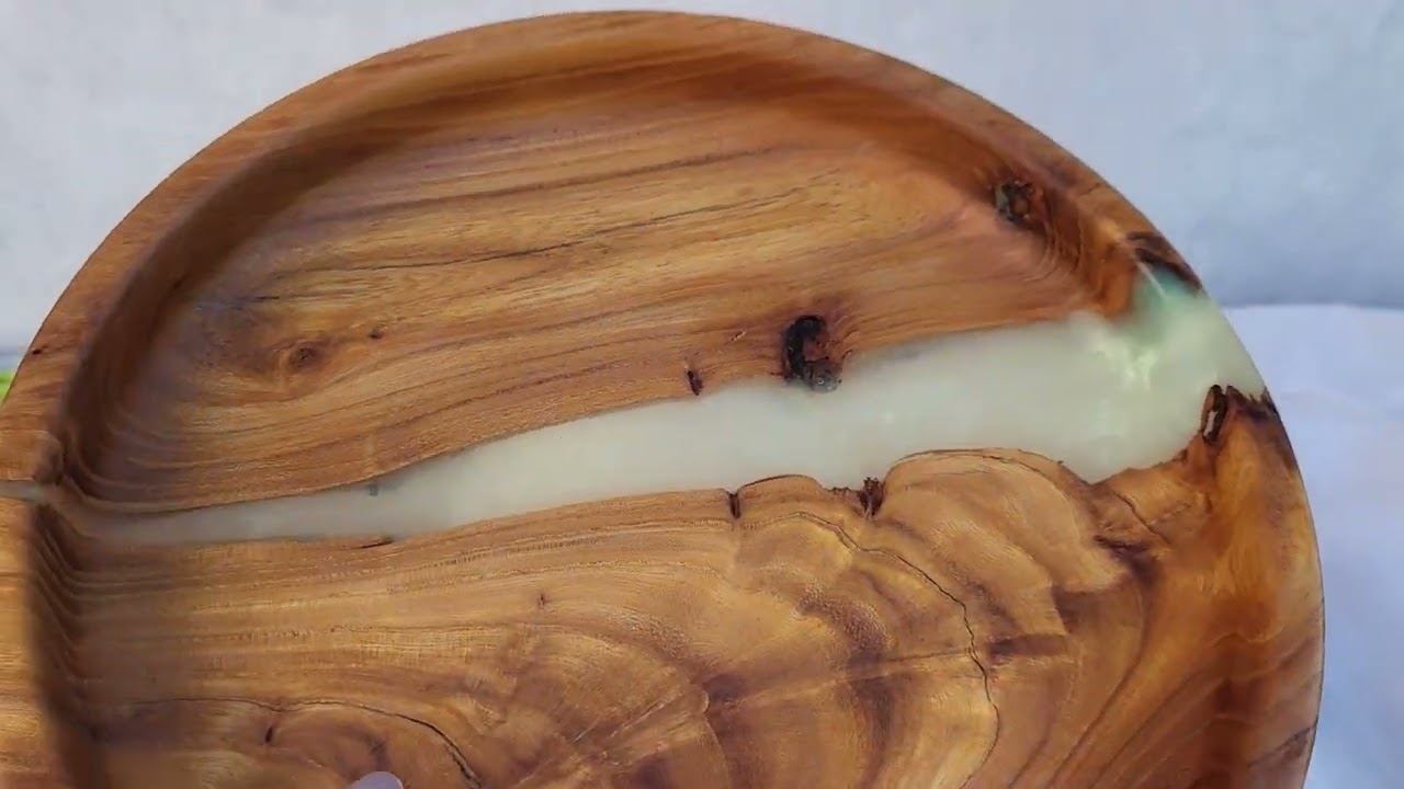 Блюдо изготовлено из древесины ваза (карагача) с ювелирной заливкой. Диаметр Диаметр 25,5 см., высота 4 см., объем 1000мл., вес 500г.