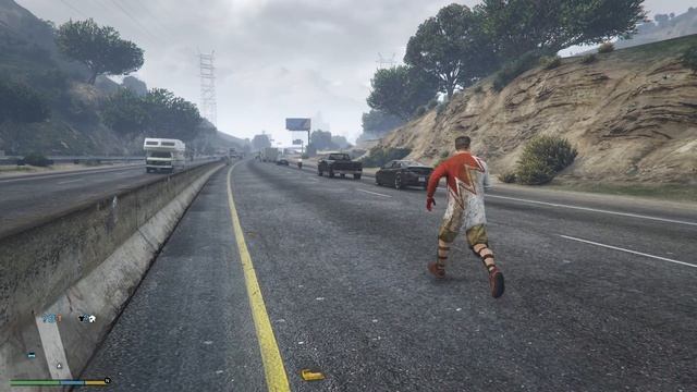 GTA V. Пугливый мужик бегает по автотрассе