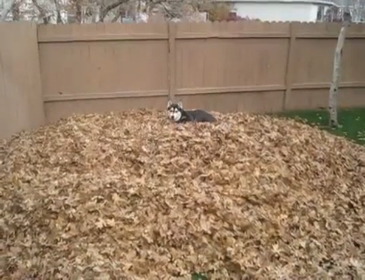 У собаки счастье - полный двор осенних листьев)