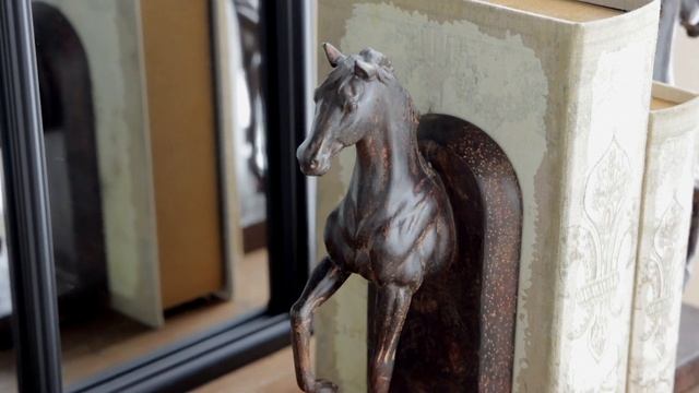 Наслаждайтесь элегантностью лошадей с этим набором из двух скульптурных подставок для книг. Массивные и прочные изделия позволят аккуратно организовать книжное пространство, при этом обеспечивая декоративную привлекательность на полке.