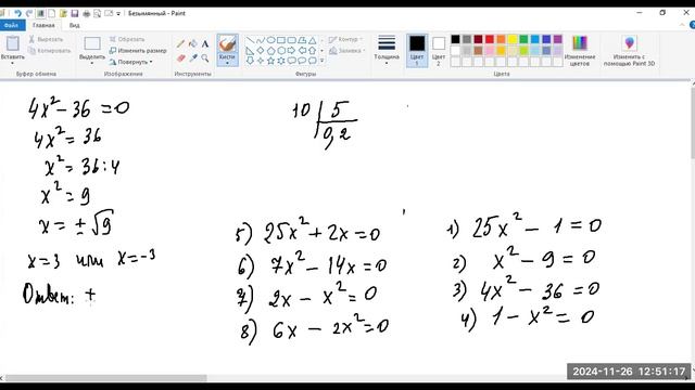 2611 решение неполных квадратных уравнений