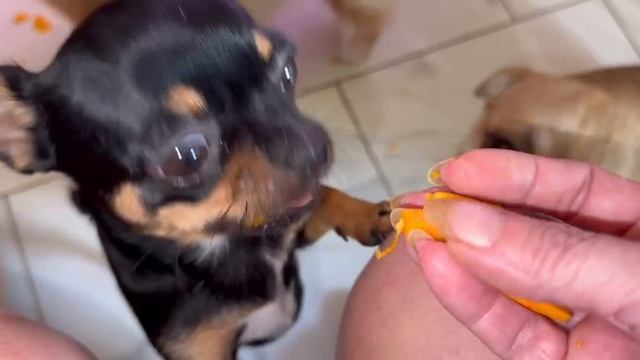 Немного полакомились тыквочкой, Донечке тыква нравится больше всех.