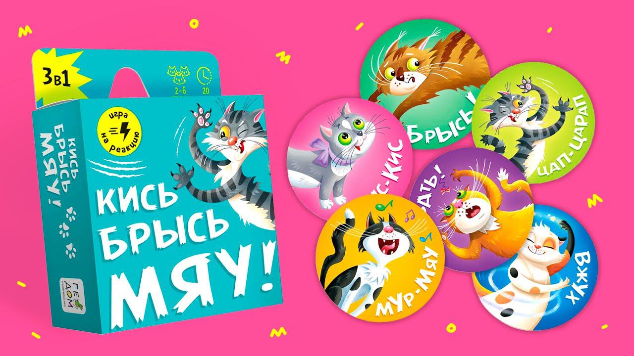 Детская карточная игра на реакцию в новой оригинальной интерпретации понравится и детям и взрослым! «Кись-брысь-мяу» – настольная игра для самых ловких, быстрых и подвижных и для всех, кто хочет таким стать. В одной коробке – 6 милых котиков и 3 игры с разной механикой: внимательно смотри, вовремя хватай и сбрасывай карточки, быстро выполняй задания – скучать точно не придётся! Игра способствует развитию внимания, скорости реакции, мышления и моторики. Подойдёт для игр дома, в старших группах детского сада и в начальной школе. Рекомендованный возраст: 5+ Количество игроков: 2-6 Купить: https://geodom.online/catalog/igry/kartochnye_i_obuchayushchie_igry/igra_kartochnaya_kis_brys_myau_60_kartochek_8_2kh8_2_sm_geodom/ Каталог: https://geodom.online/catalog/ Мы в соцсетях: https://www.instagram.com/geodom_izdatel/ https://vk.com/izdat_geodom https://www.facebook.com/izdatgeodom А так же звоните 8 (800) 200 999 1
