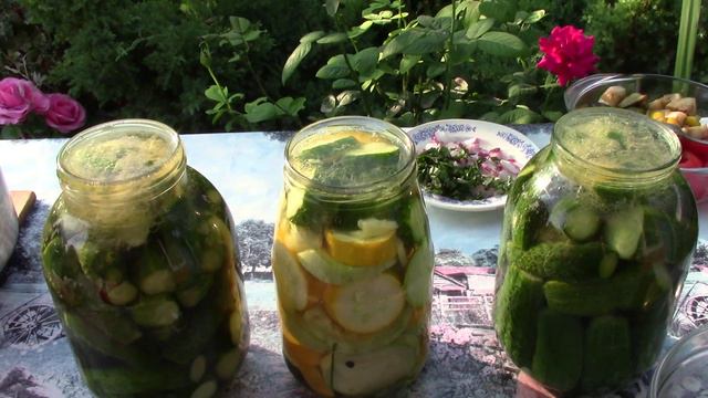 Огурцы с кабачками на зиму. Легкий салат из баклажан.