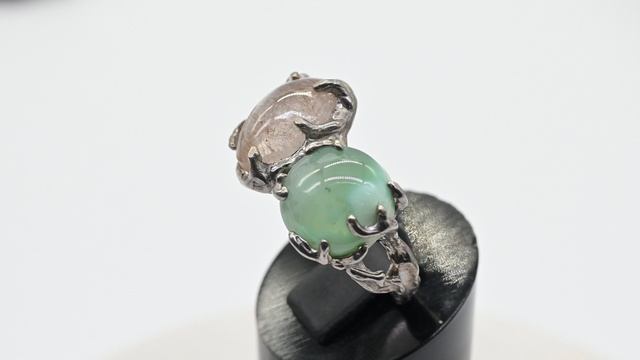 Кольцо рутиловый кварц с хризопразом 25*15мм, размер-18 м208823