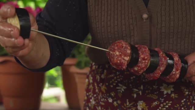 Kənd Həyatı. Первый весенний урожай чеснока. Кебаб из баклажанов и говядины по-деревенски