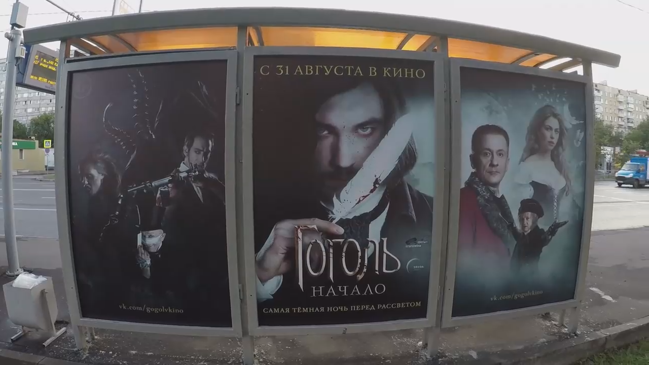 Найди брендированную остановку, сделай селфи, опубликуй в своих социальных сетях с хештэгом #ГогольВКино и получи возможность выиграть билет на закрытый премьерный показ в кино!