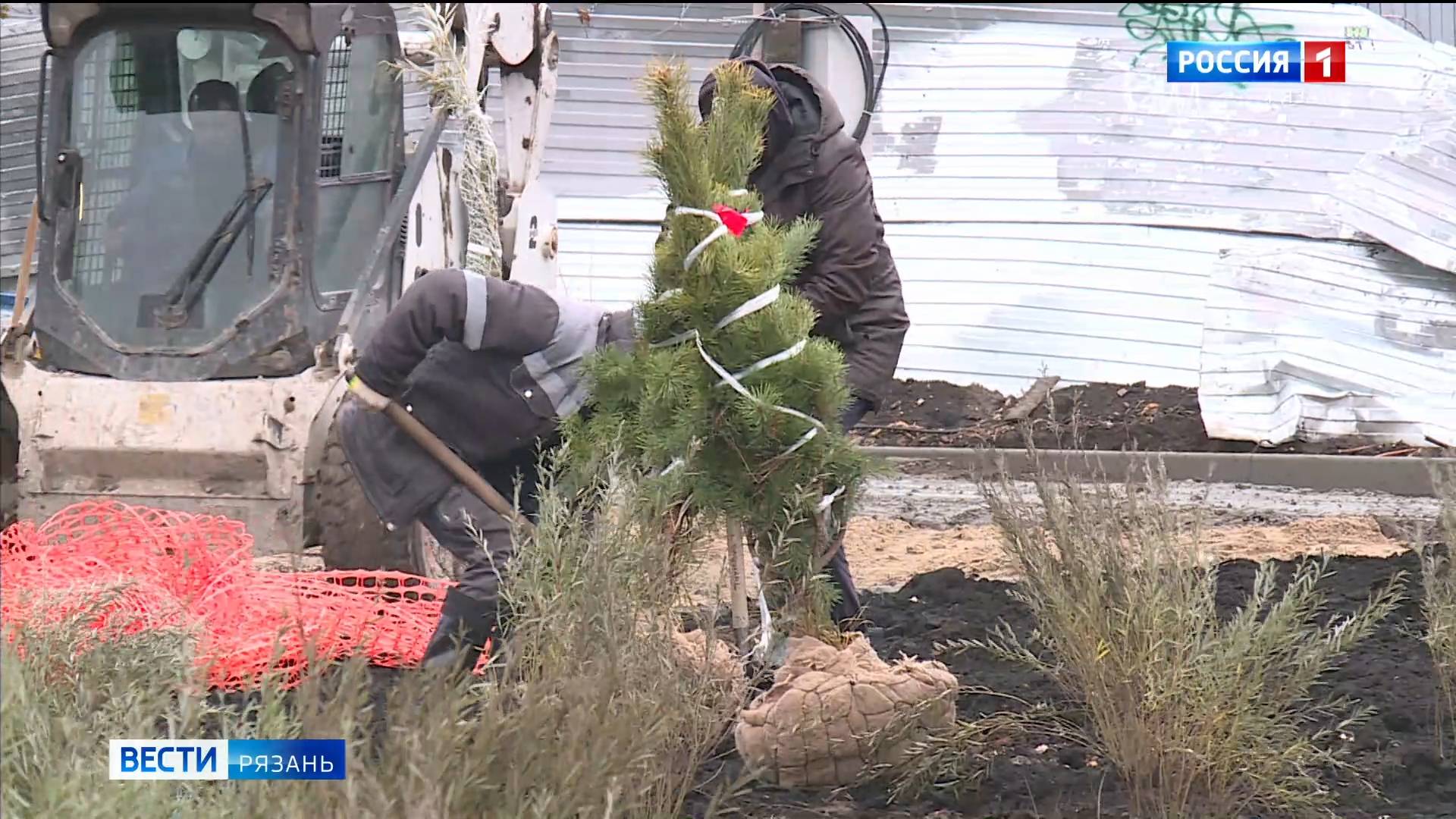 Параллельно со строительными работами, проводится озеленение. Сегодня на участке от цирка до кремлевского вала сажали деревья и кустарники.