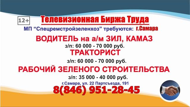 ТЕЛЕВИЗИОННАЯ БИРЖА ТРУДА – это слайдовая программа по трудоустройству, где голосом озвучивается ВАКАНСИЯ и ТЕЛЕФОН прямого работодателя, выходит на телеканале ГУБЕРНИЯ в Самаре и Самарской области