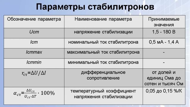 Лекция «Стабилитроны и параметрические стабилизаторы напряжения»